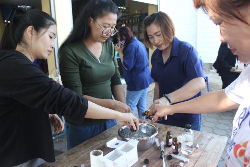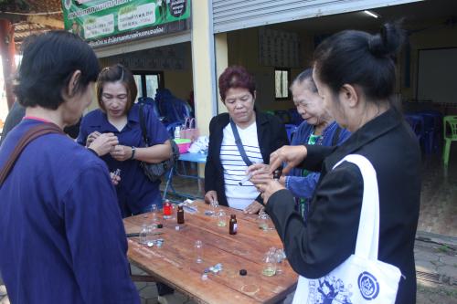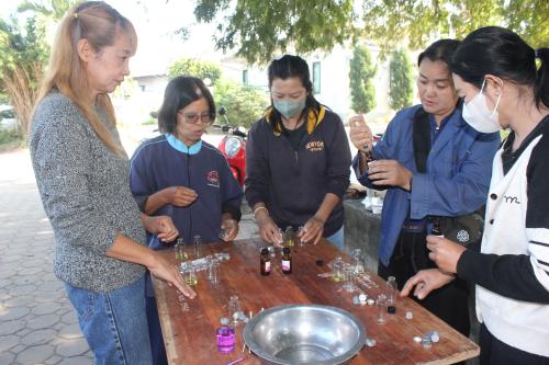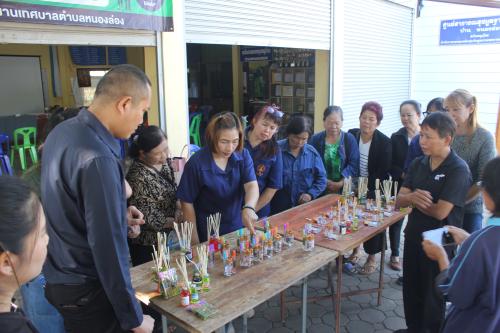 สำหรับวันที่สองของการดำเนินโครงการฯ เป็นการฝึกทำพิมเสนน้ำ ทำสเปรย์ตะไคร้ไล่ยุง ทำสเปรย์ดับกลิ่นเสื้อผ้า และทำก้านไม้น้ำหอม ซึ่งการได้รับการพัฒนาทักษะด้านอาชีพนี้ ผู้เข้าร่วมโครงการจะสามารถนำความรู้ไปประกอบอาชีพเพื่อสร้างรายได้ให้กับครัวเรือนตามแนวทางการสร้างสัมมาชีพชุมชนต่อไป
